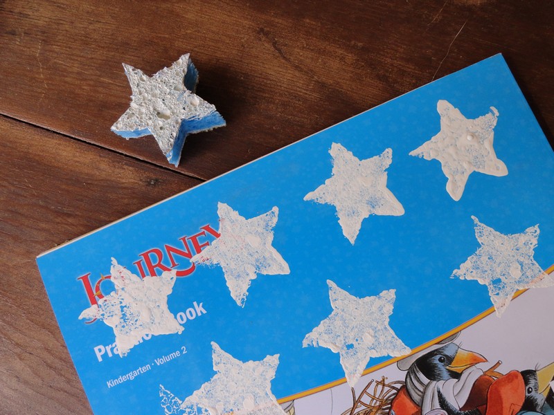5. Ultimately, I just couldn't do it unless I went with the 50, so 50 it would have to be. First, I experimented with cutting out a star from a sponge and seeing if I liked it enough to use for my flag because I really wasn't looking forward to painting 50 of those babies - nah! Too sloppy for my taste. Especially with my crisp lines on the stripes. The barn red I used is actually Behr 'Geranium' by the way.
